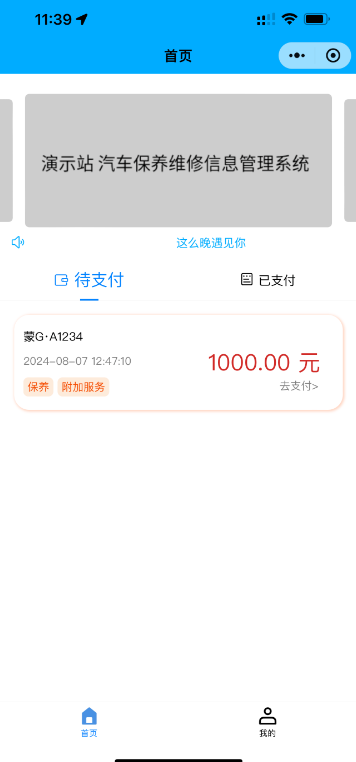 后台向用户生成订单并自动显示到用户的小程序首页。