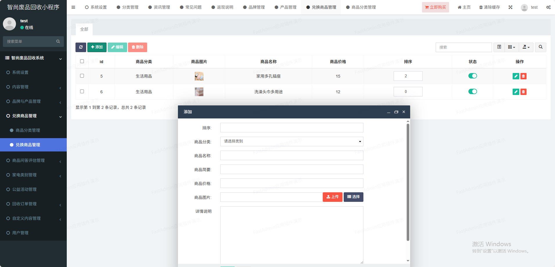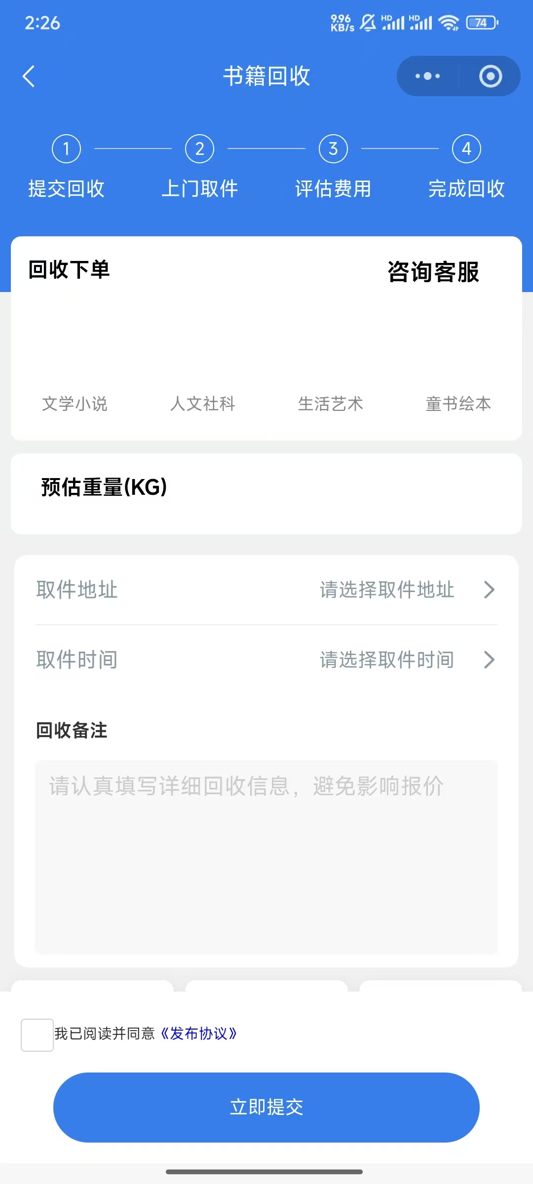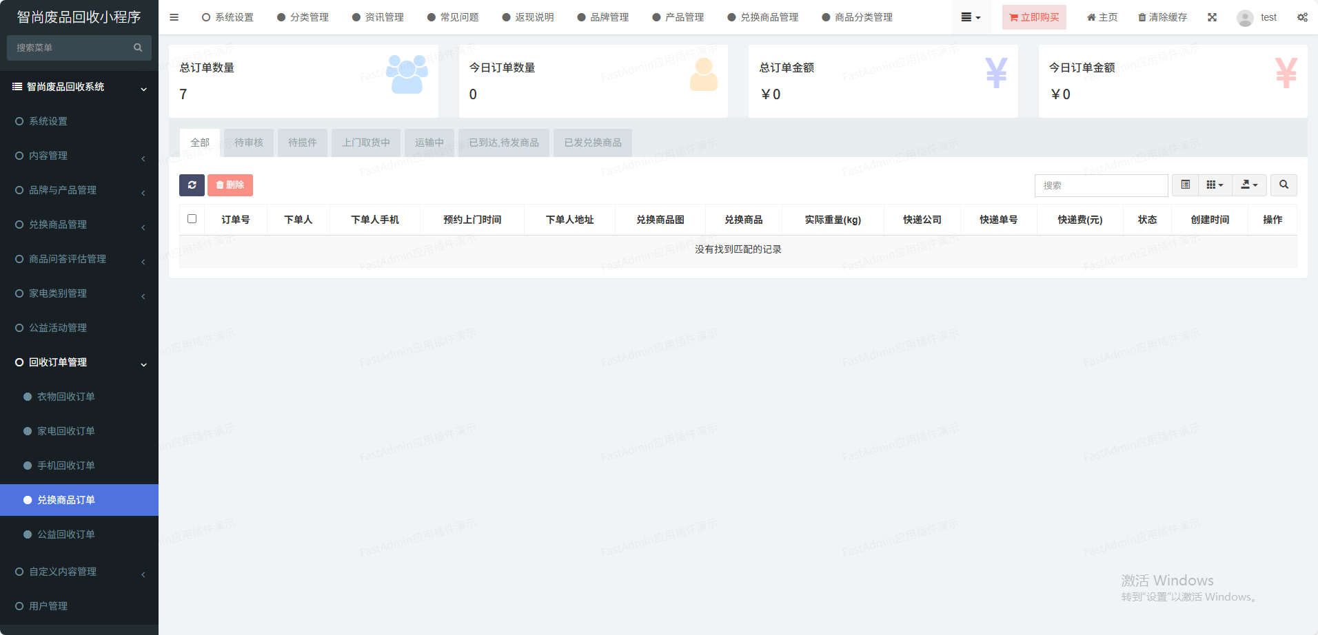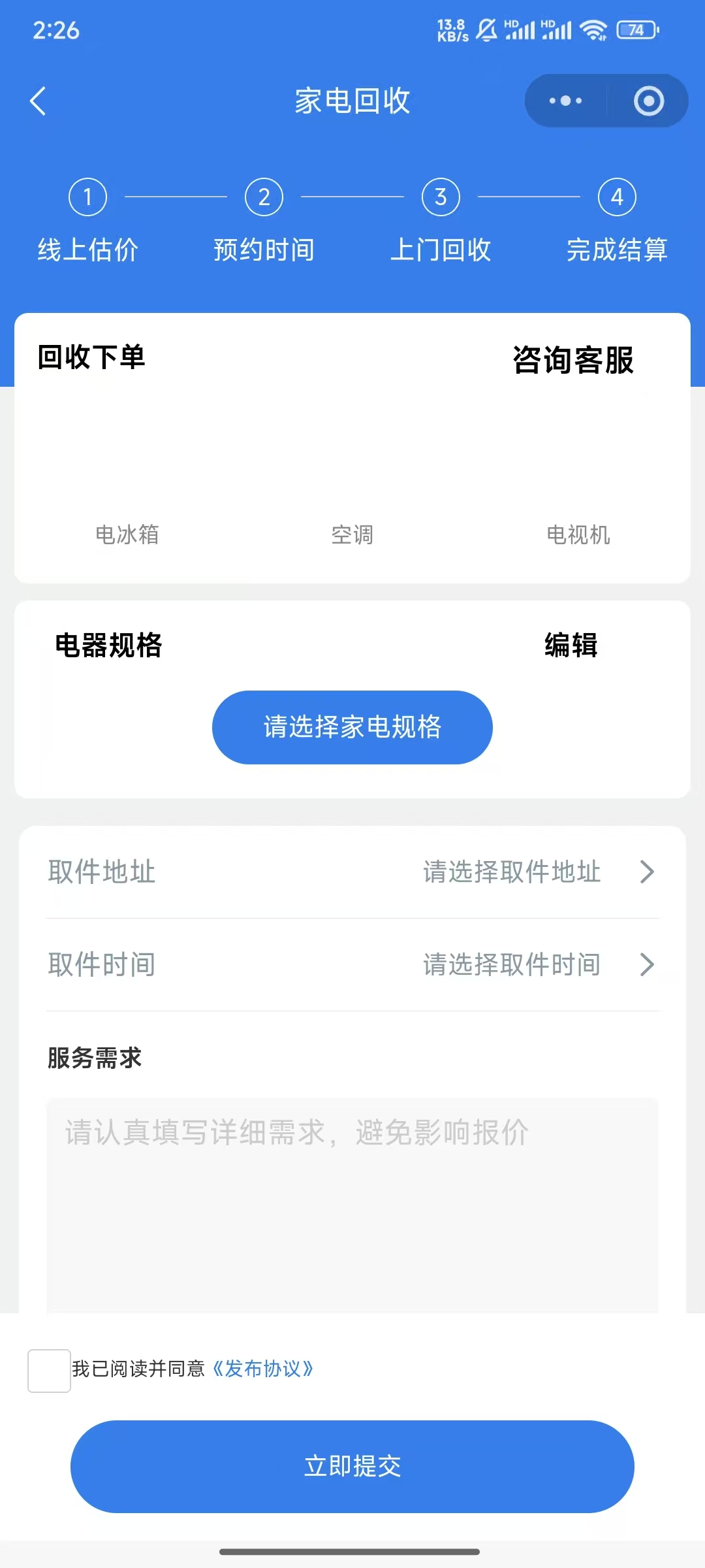 (1)旧衣物回收支持线上按旧衣重量预约评估(2)家电回收支持自定义家电类型预约评估(3)书籍回收支持线上按书籍重量预约评估(4)手机评估回收支持在线评估手机后预约上门取件(5)公益活动回收支持发起公益活动捐赠旧物(6)旧物兑换支持旧物线上兑换商品(7)后端订单支持后端订单审核、预约快递、收货评估、结算价格等功能(8)常见问题展示平台使用说明及注意事项