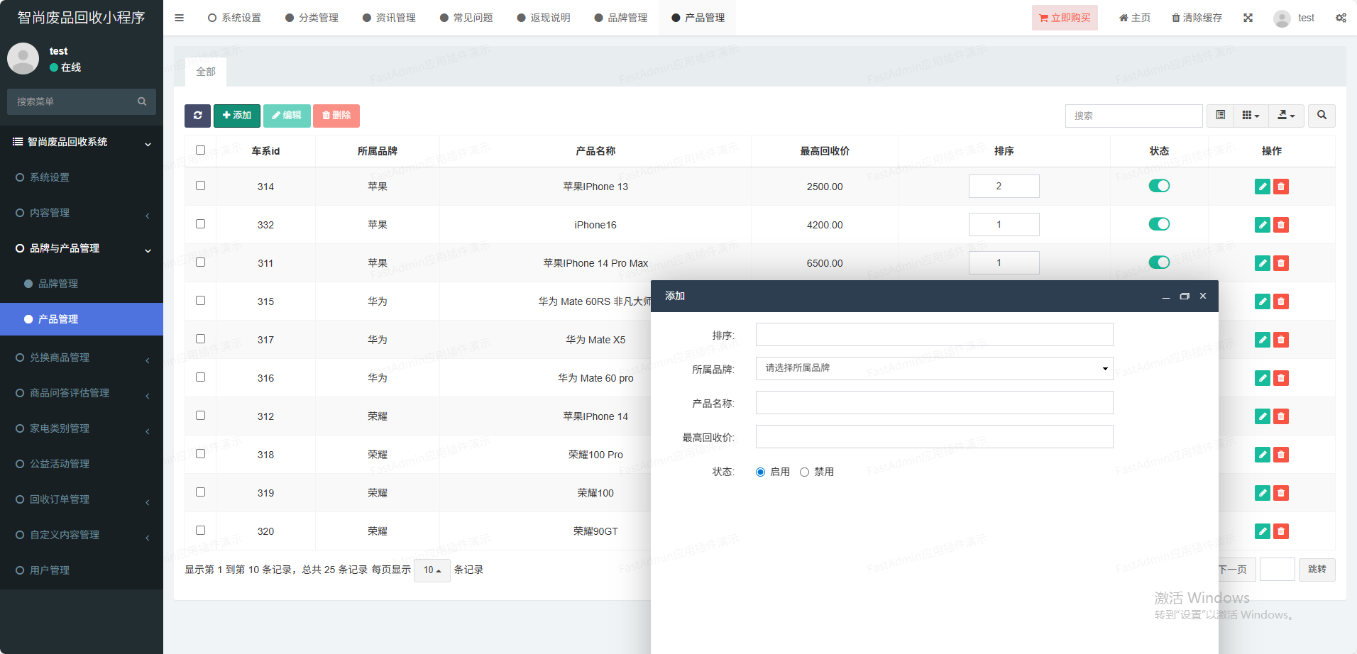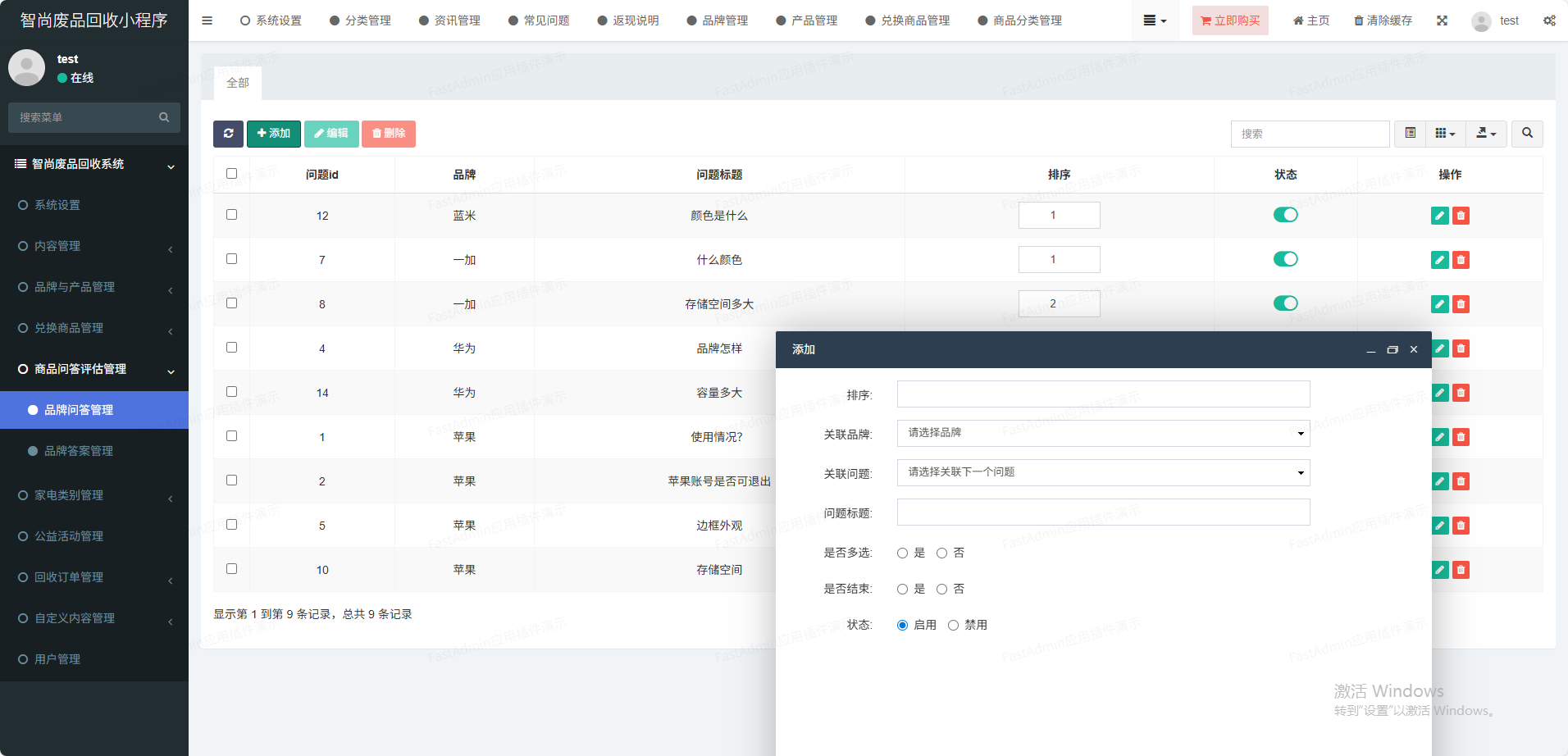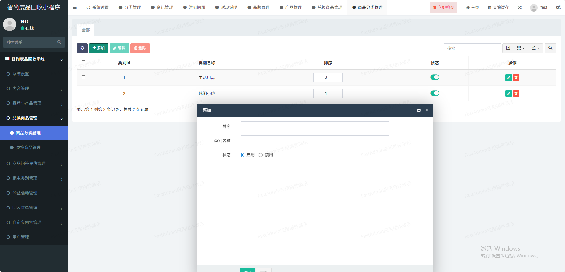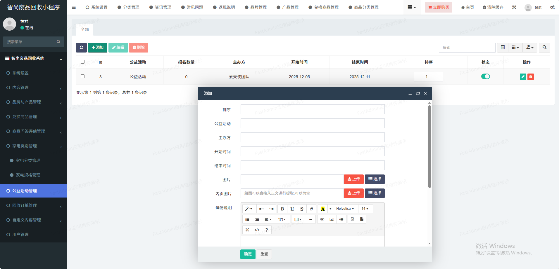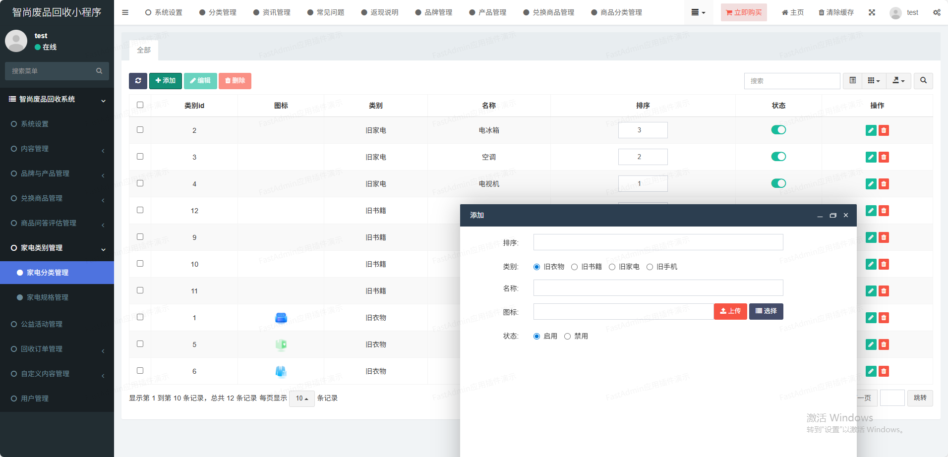 (1)旧衣物回收支持线上按旧衣重量预约评估(2)家电回收支持自定义家电类型预约评估(3)书籍回收支持线上按书籍重量预约评估(4)手机评估回收支持在线评估手机后预约上门取件(5)公益活动回收支持发起公益活动捐赠旧物(6)旧物兑换支持旧物线上兑换商品(7)后端订单支持后端订单审核、预约快递、收货评估、结算价格等功能(8)常见问题展示平台使用说明及注意事项