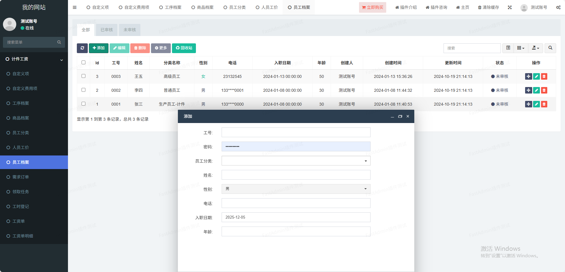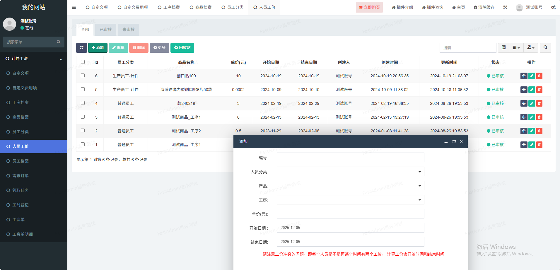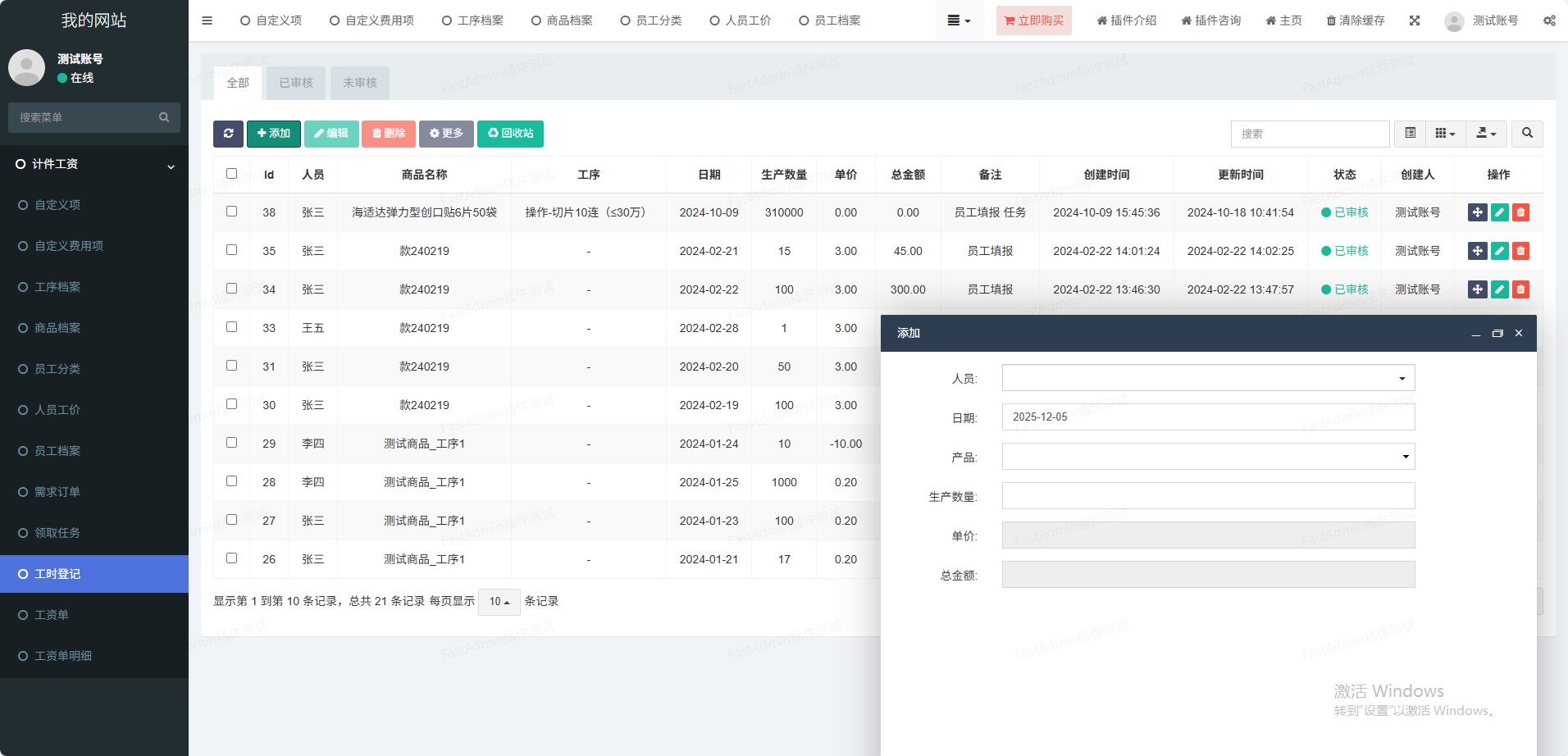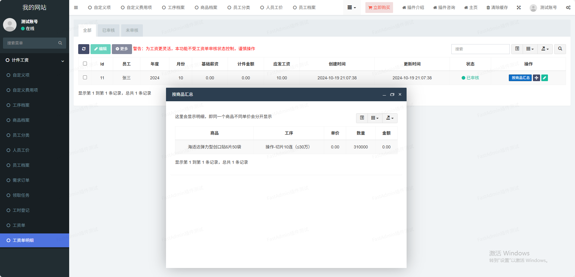 (1)H5手机端支持在线报工,支持查看我的工资。(2)自定义费用项在基础计件工资基础上增加扣除和增加项,可体现更详细的工资情况。审核后生效。(3)产品档案管理生产的产品,为制定工价和报工做准备。审核后生效。(4)员工分类把不同的员工进行分类,方便制定工价。审核后生效。(5)员工档案管理企业或功能的计件工人的信息。审核后生效。(6)人员工价定义每类员工在生产某件产品在某段时间的工价。审核后生效。(7)工时登记录入员工的工时,审核后生效,此功能员工手机端可操作。(8)工资单按月度给工人计算工资。里面有扣减和增加项。 审核后生效。(9)工资单明细可查看每个员工的工资明细情况。