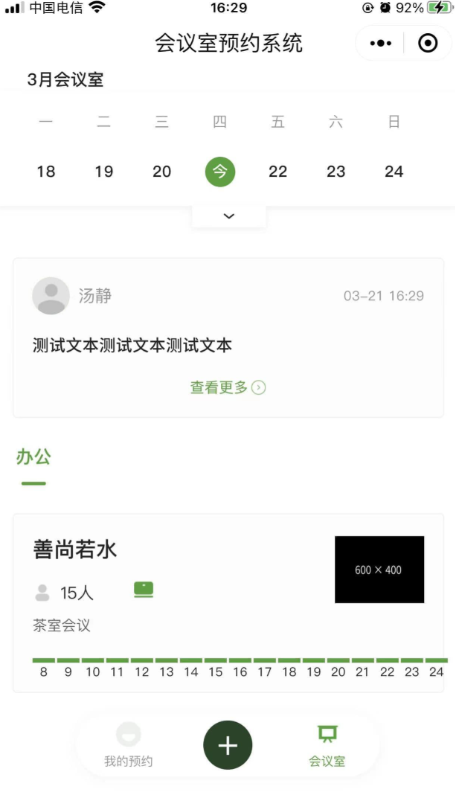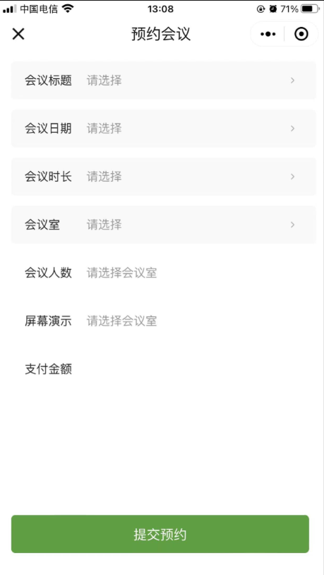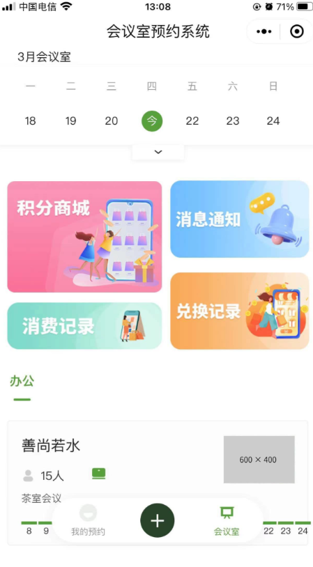 (1)会议室类目提供多种类型和设施的会议室选择,满足不同会议需求。(2)预约日历展示会议室预约情况,方便用户选择空闲时段。(3)预约记录记录用户预约历史,便于查询与管理。(4)系统通知公告发布最新通知和公告,确保用户及时了解系统动态。(5)Uniapp开发前端基于UniApp+uView进行的二次开发,目前仅支持微信小程序(6)付费预约方便管理员添加新的会议室信息,更新设施与价格。(7)积分签到用户预约会议和签到,获取积分奖励,提升用户粘性。(8)积分商城提供多种商品供用户用积分兑换,增加积分使用途径。(9)兑换订单通过积分兑换积分商城内商品,查看订单状态。