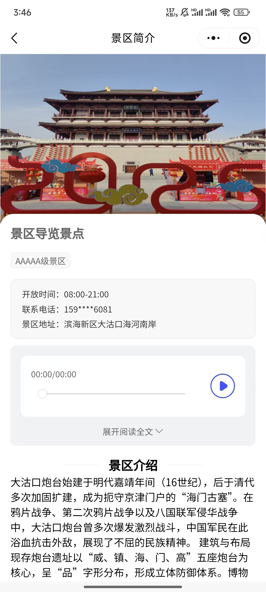 文字、图片、音频等形式介绍景点历史文化或自然特色。