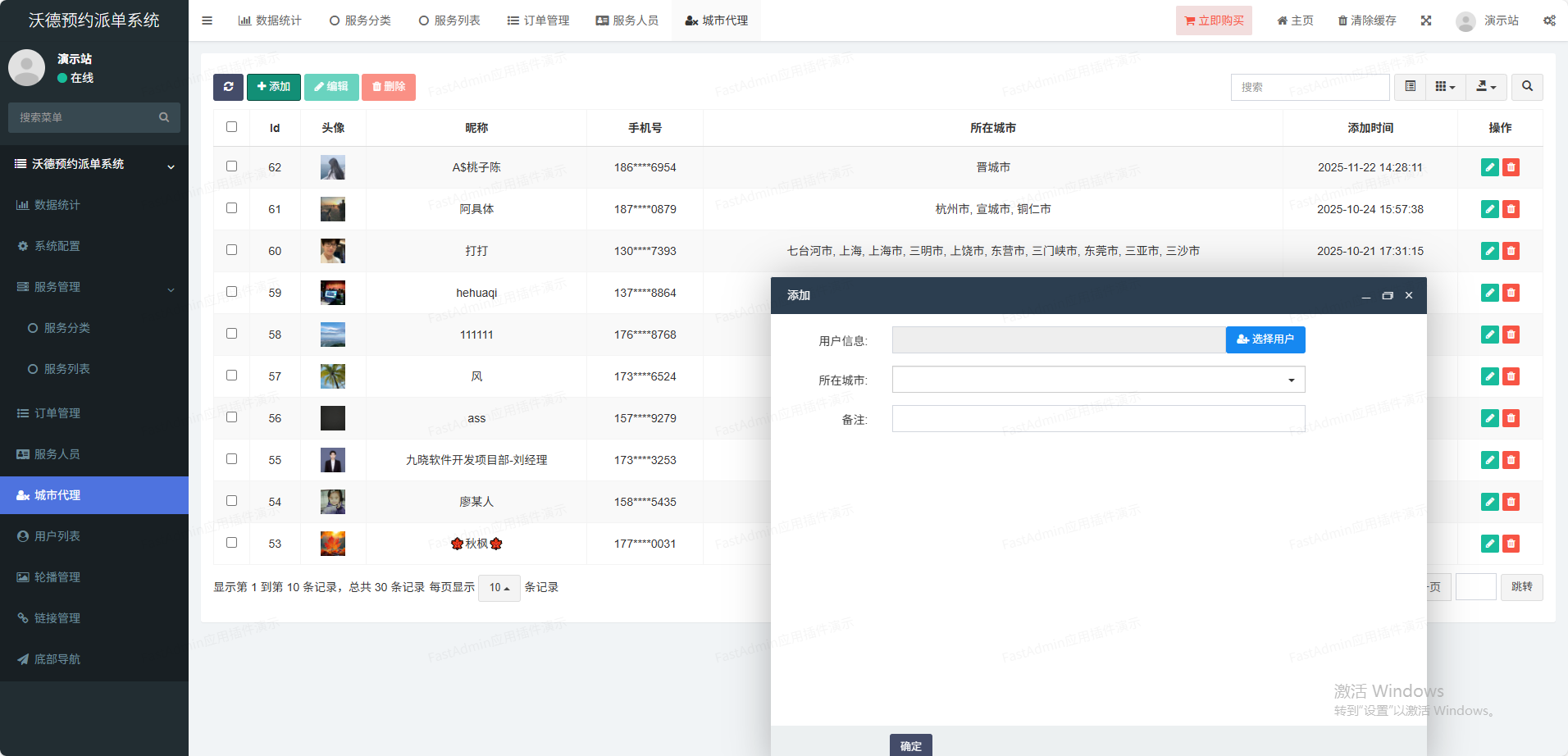 城市服务合作伙伴关系,城市合伙人可以对管理城市中的用户订单进行分配