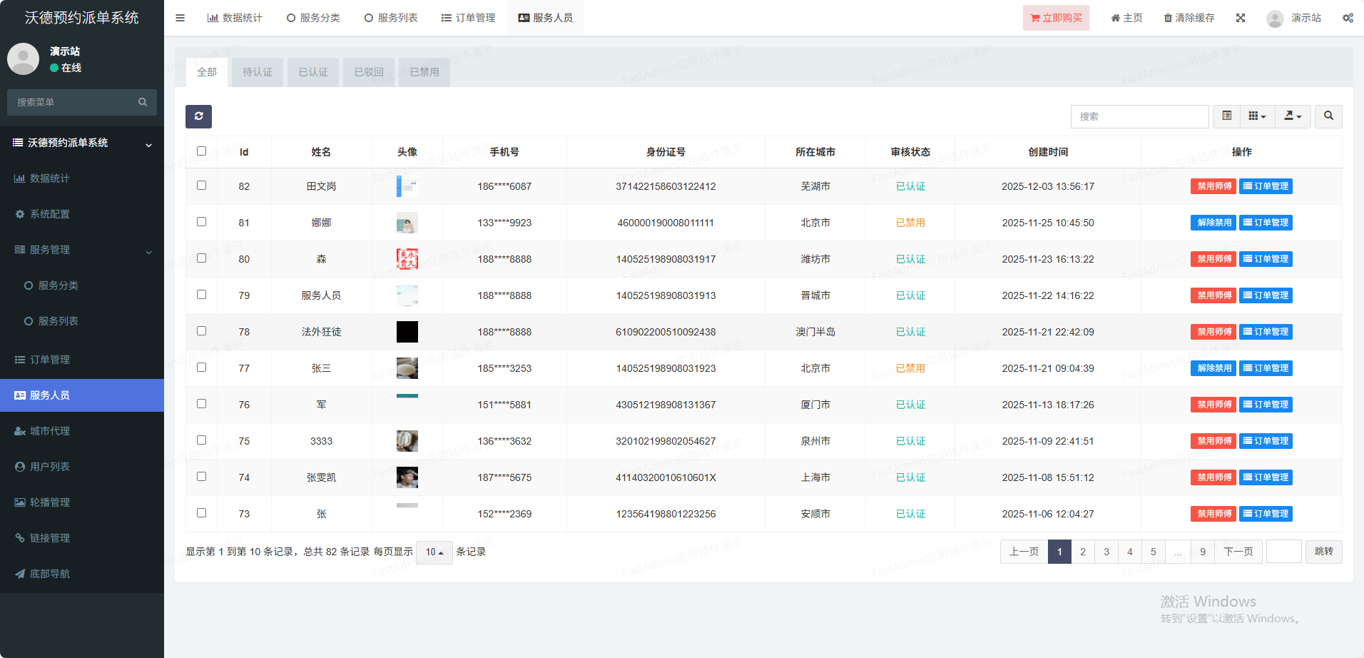 审核师傅认证,工单指派环节可按照技能需要选择服务人员