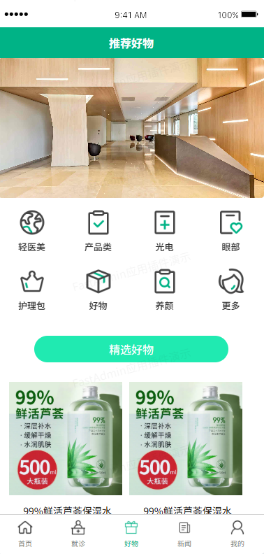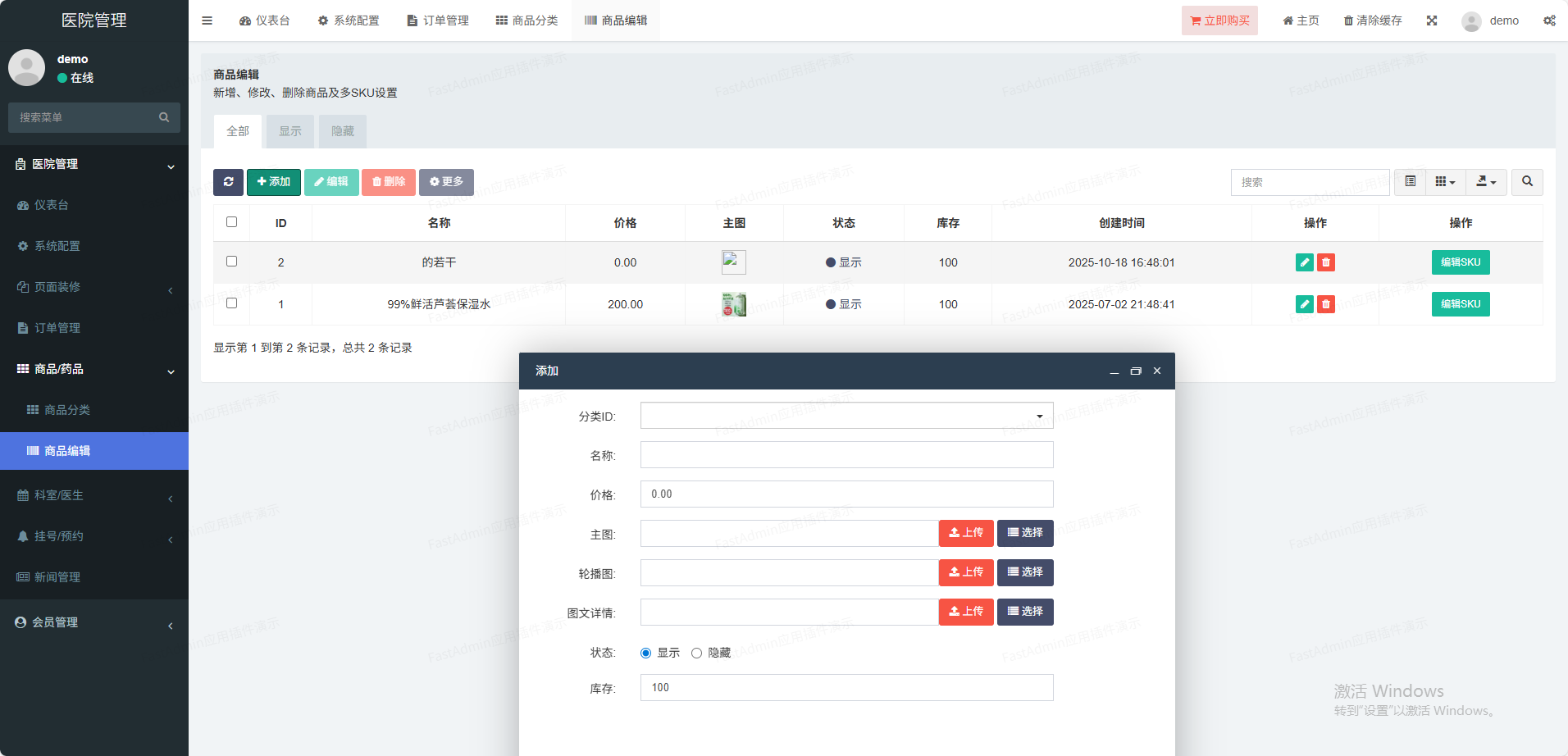 内嵌商城系统,可管理商品或药品,且可进行多SKU管理,适合售卖所有类别商品,例如医美产品或其他健康类商品。