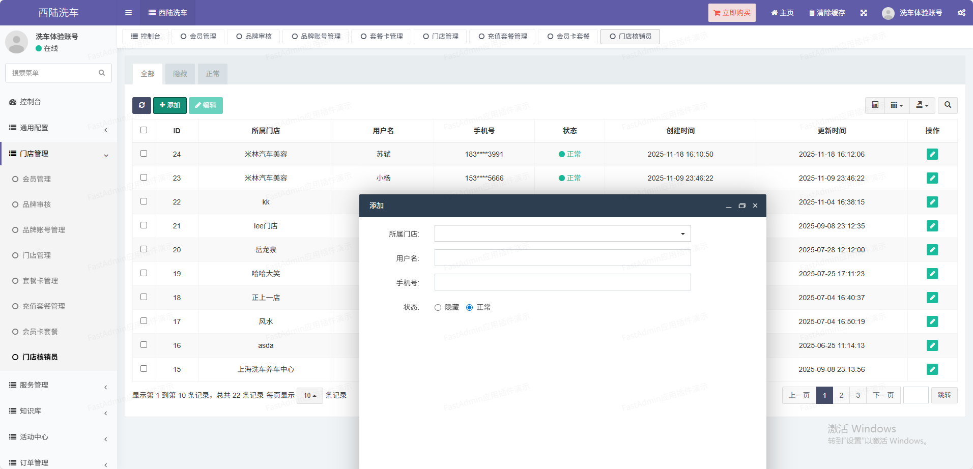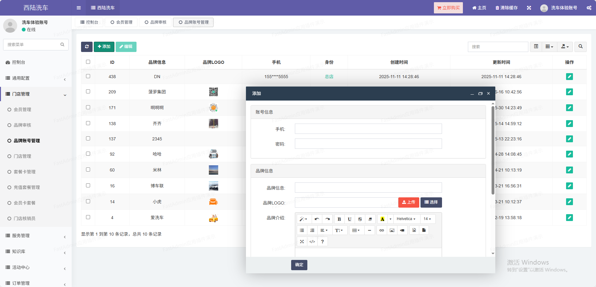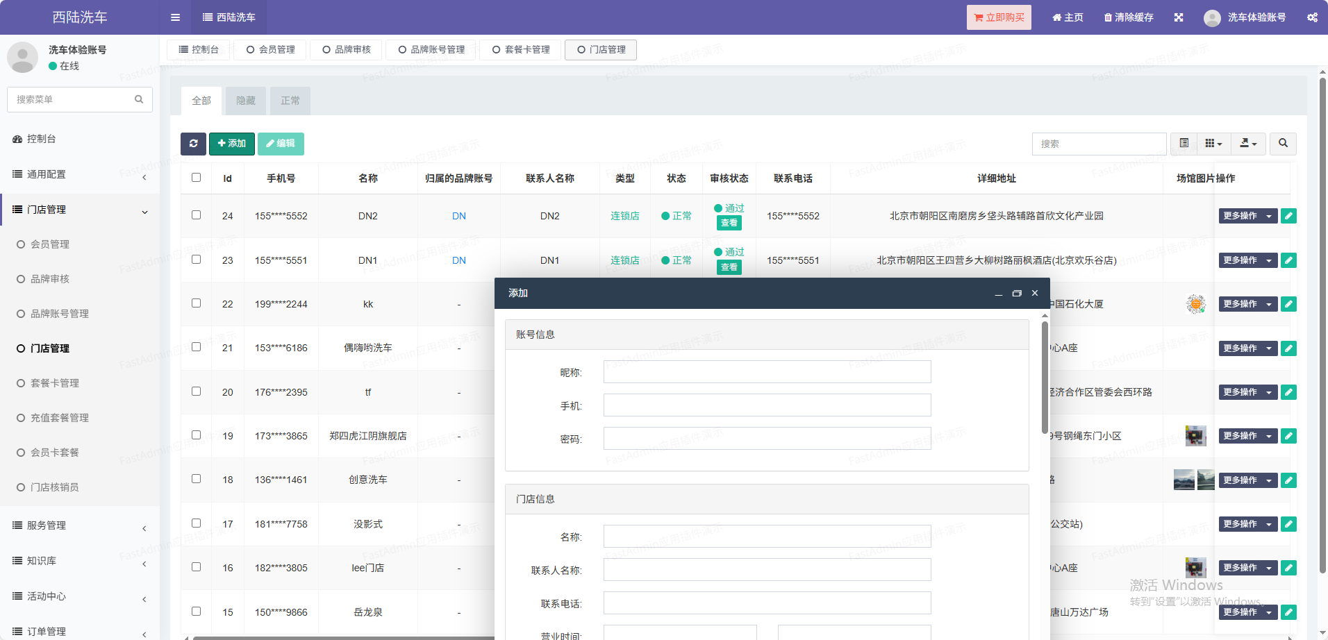 同时支持多家连锁门店和独立门店,连锁门店可以创建多个子门店。