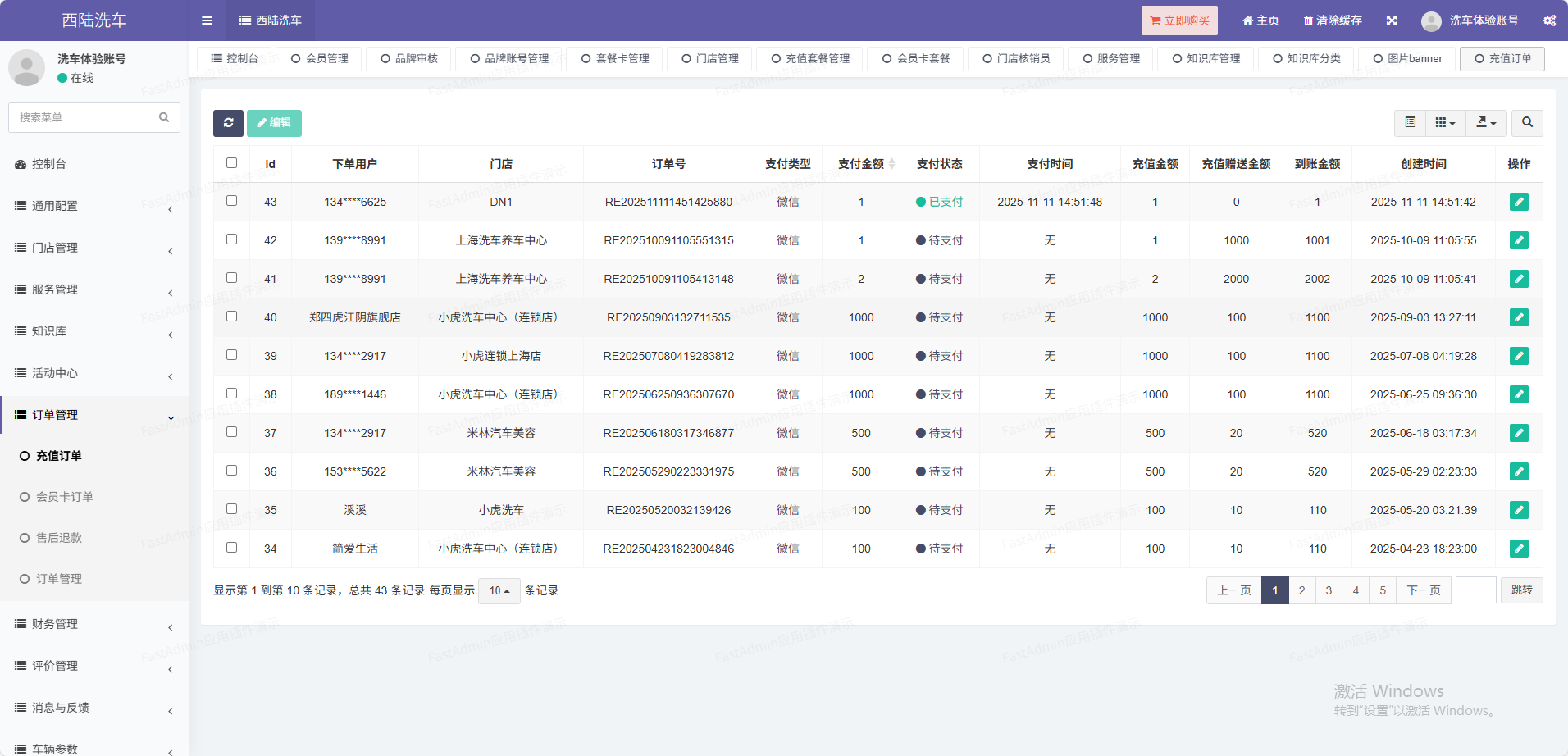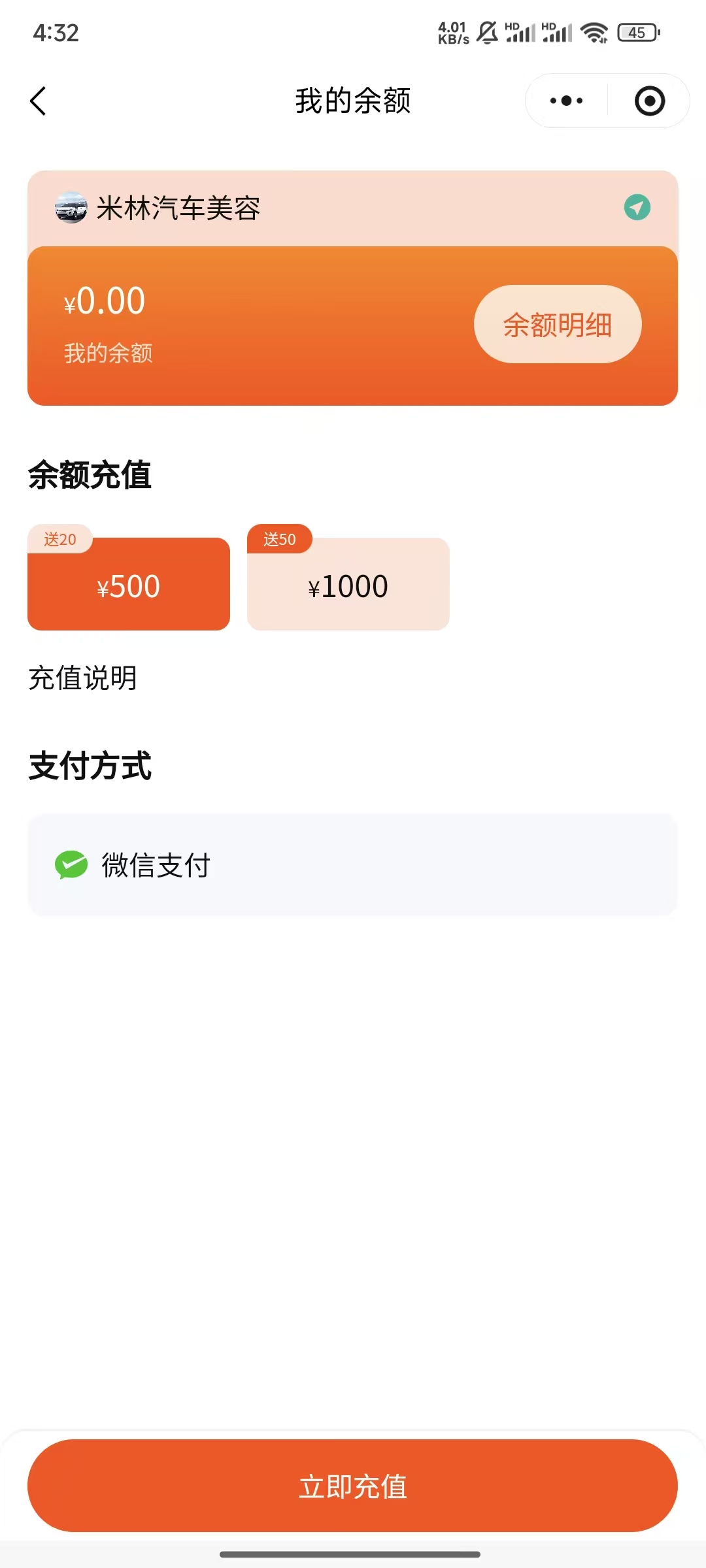 在线充值,各店独立余额体系,同品牌下所有分店余额通用,独立店铺只能本店使用