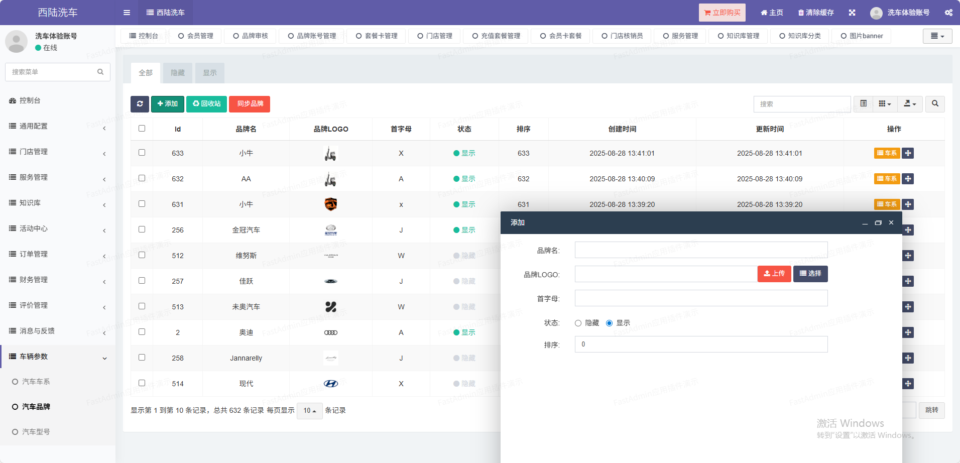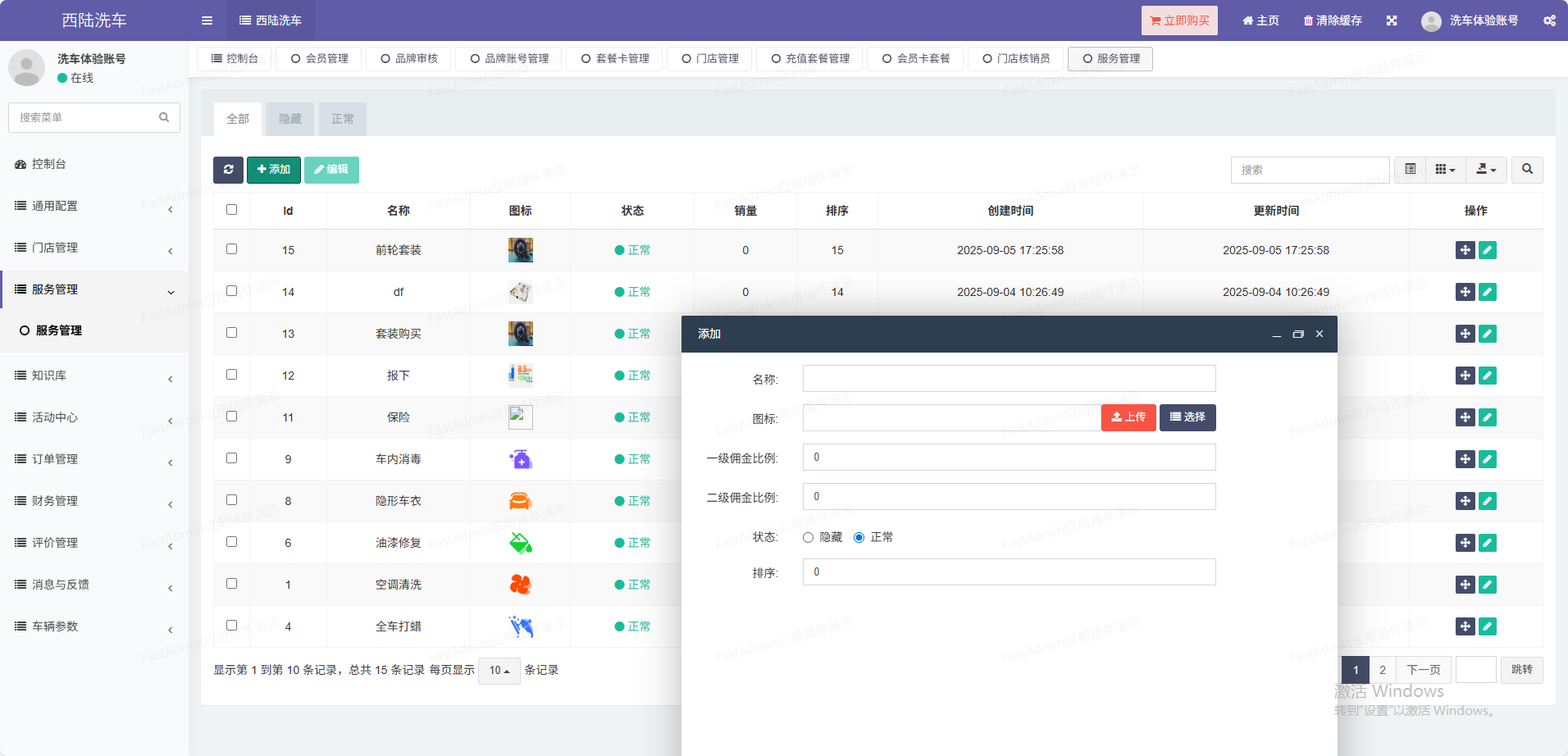 服务由平台统一添加,品牌主账号或独立门店可以勾选哪些服务并设置价格。