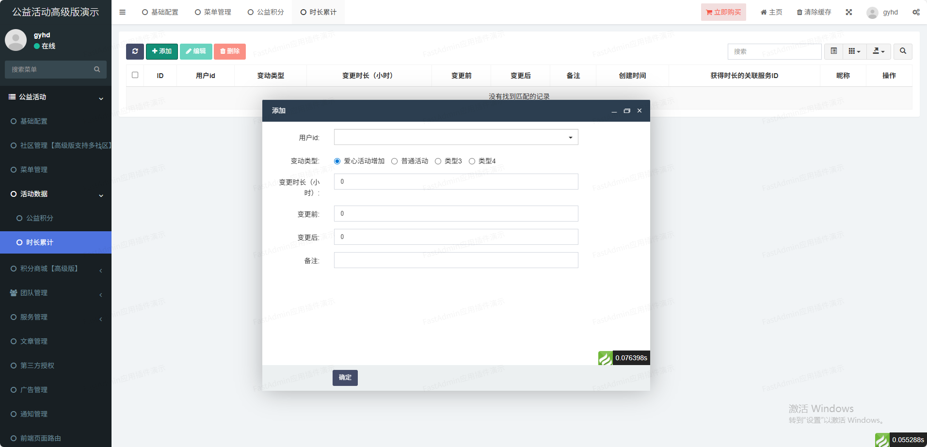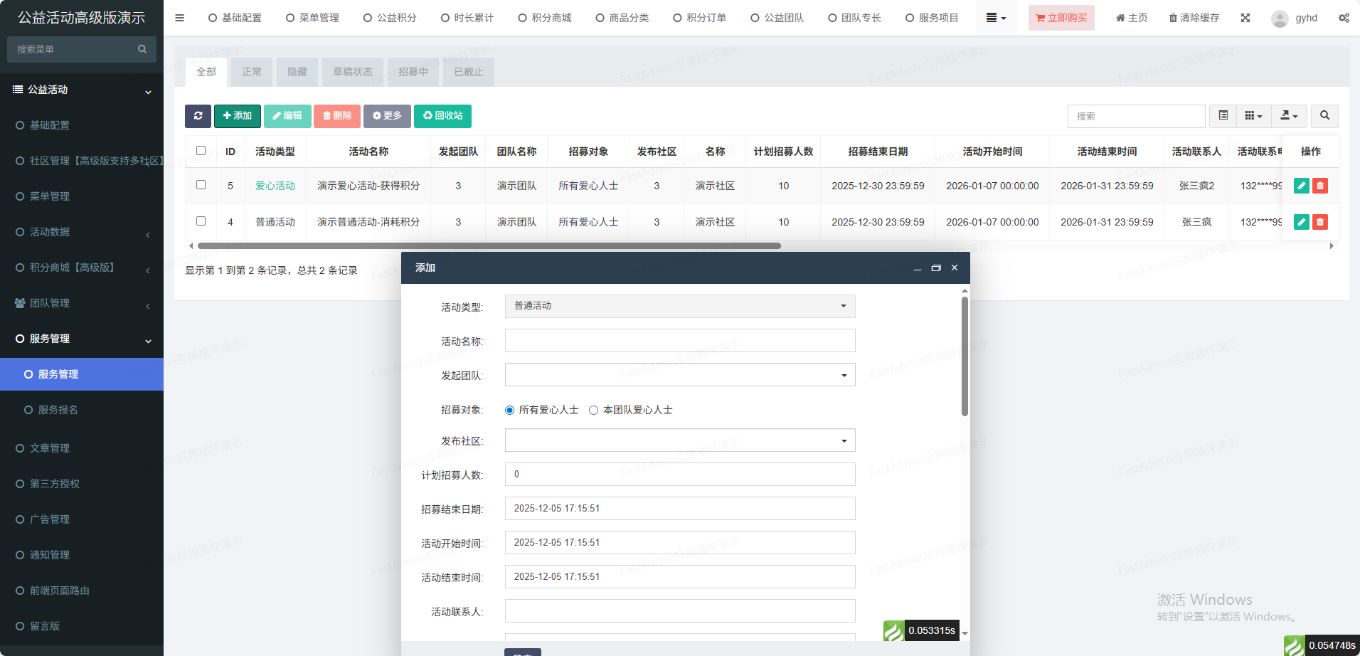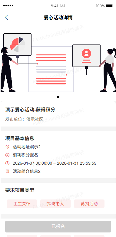 支持发布获取积分的爱心活动以及发布消耗积分参与的一般活动