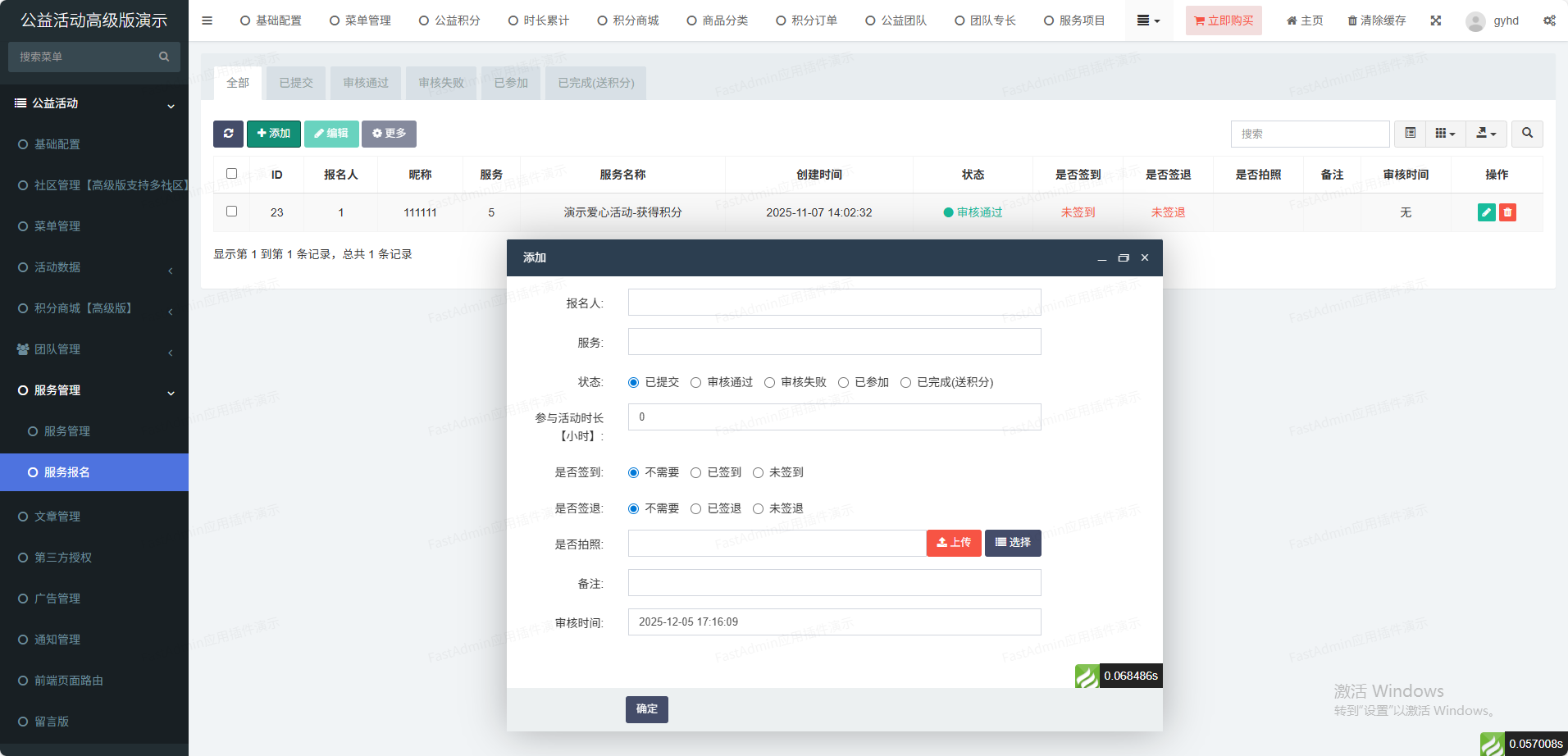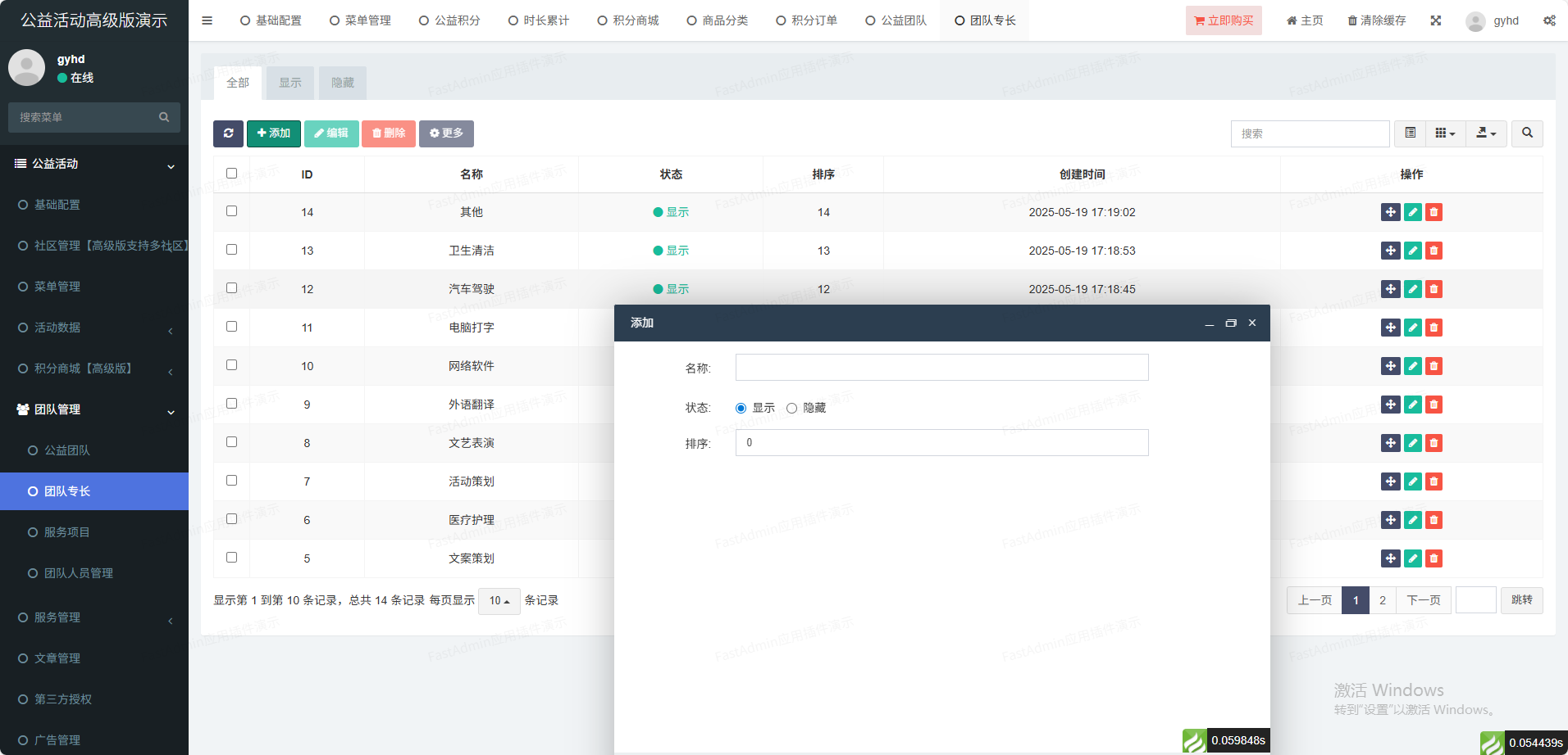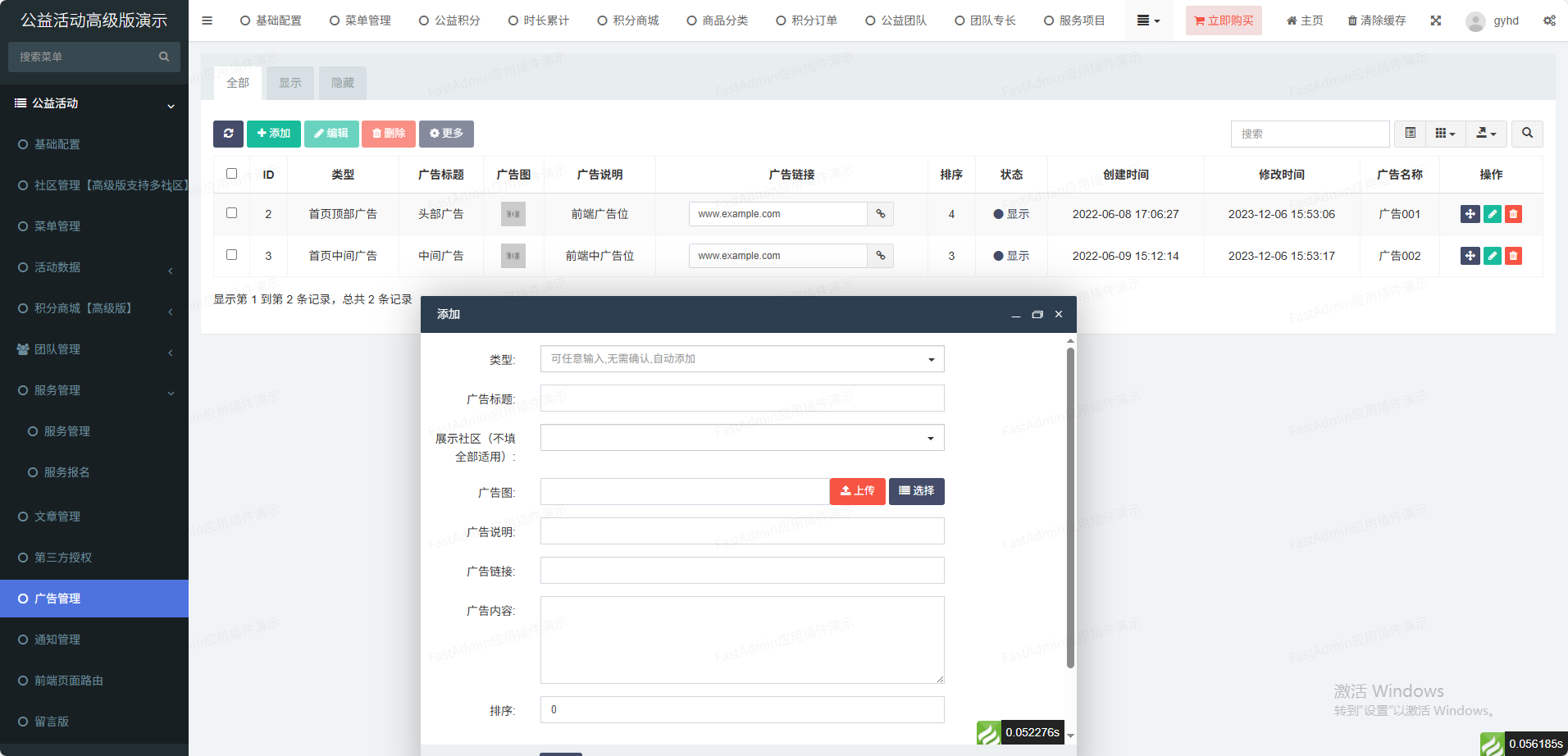 支持发布获取积分的爱心活动以及发布消耗积分参与的一般活动