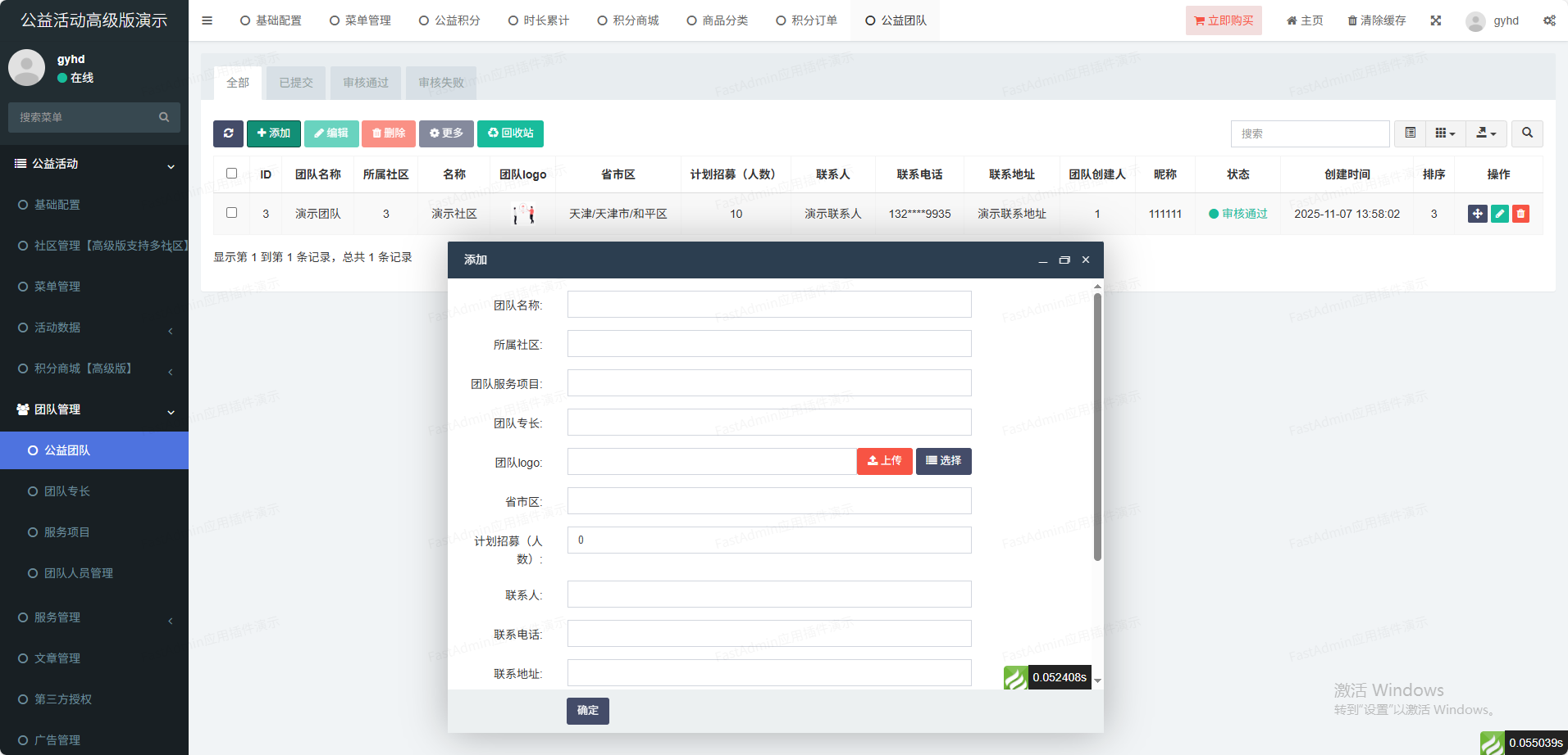 爱心人士可以申请创建团队,组建自己的活动团体,支持创建人手机端审核加入团队的人员。