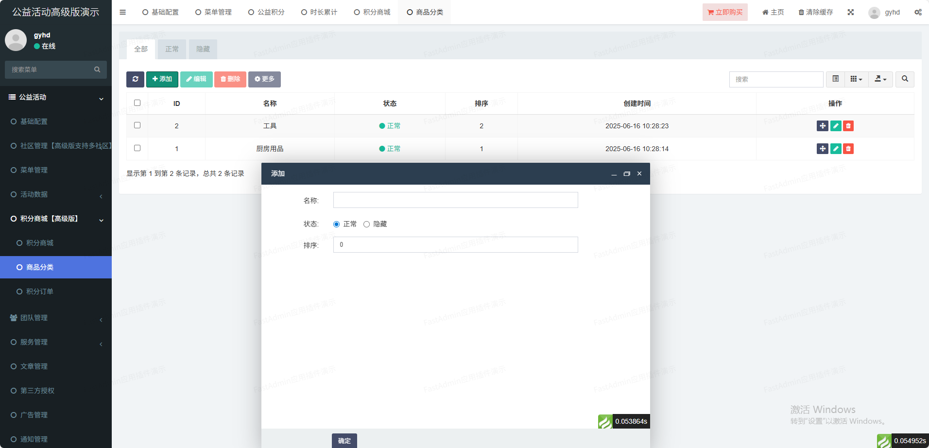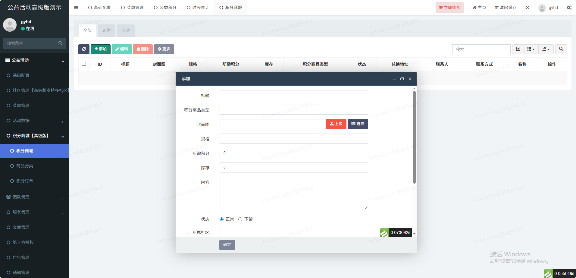 获取的积分可以兑换实体商品,商品可后台设置以及领取地址。