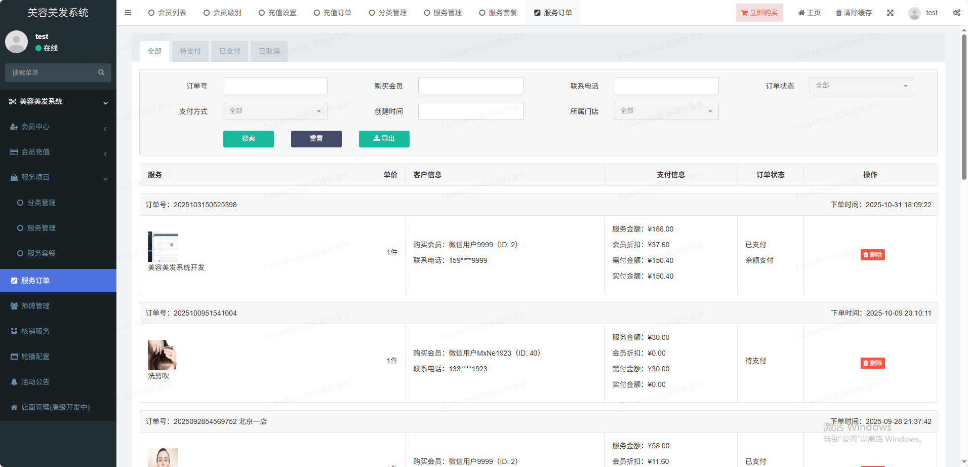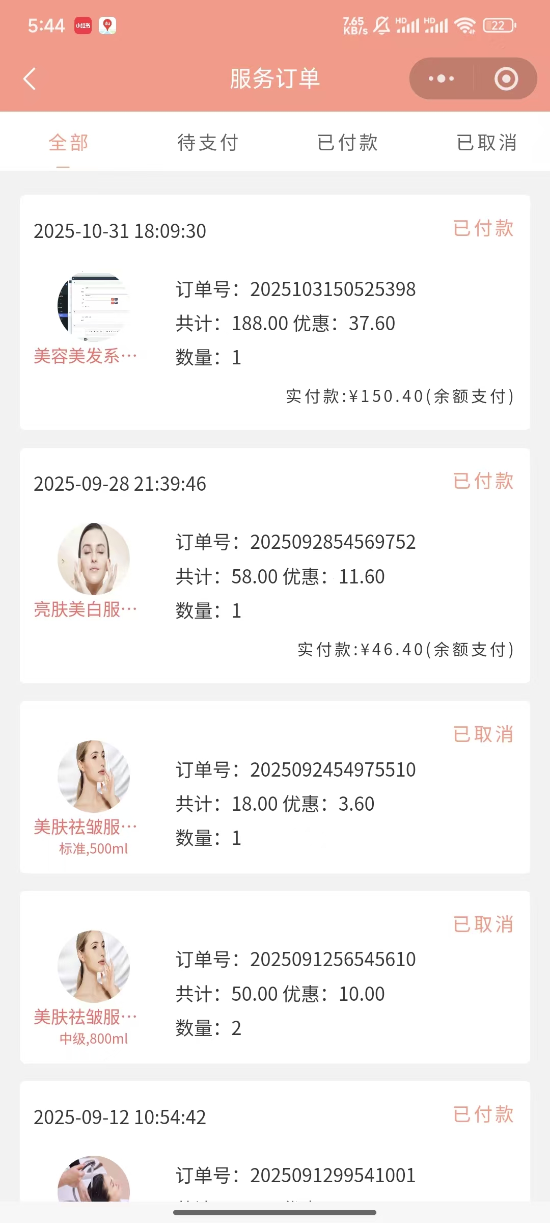订单支持微信和余额支付,订单支付时间设置10分钟,到时间不支付订单自动取消。