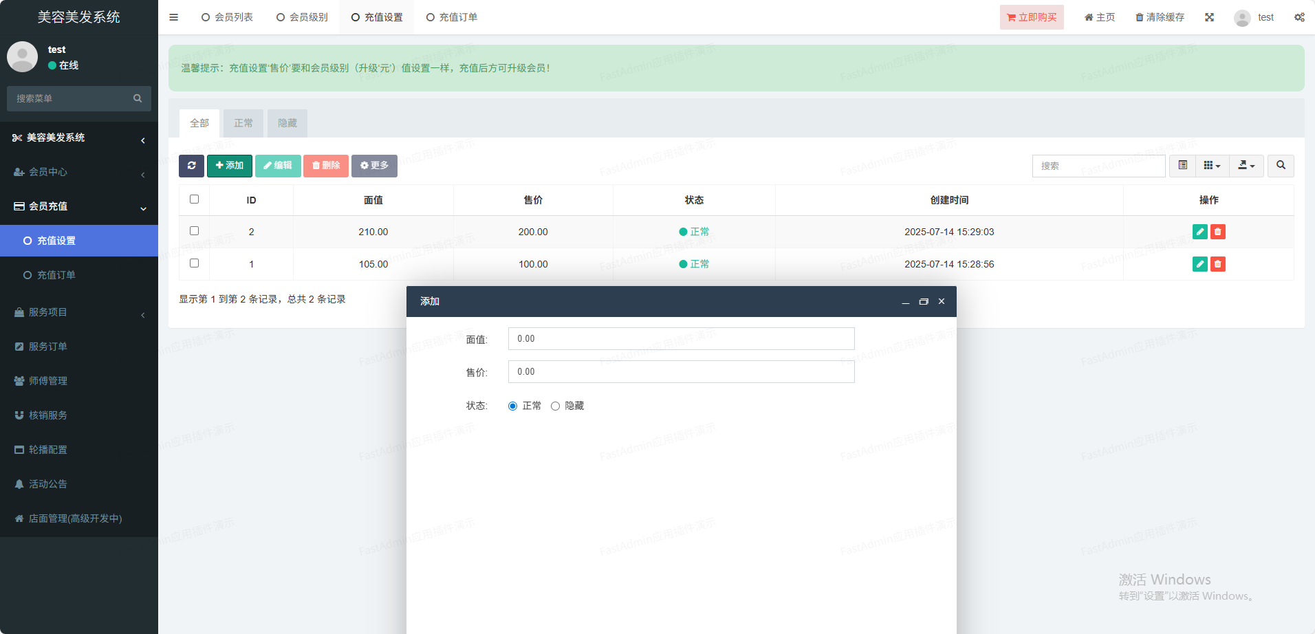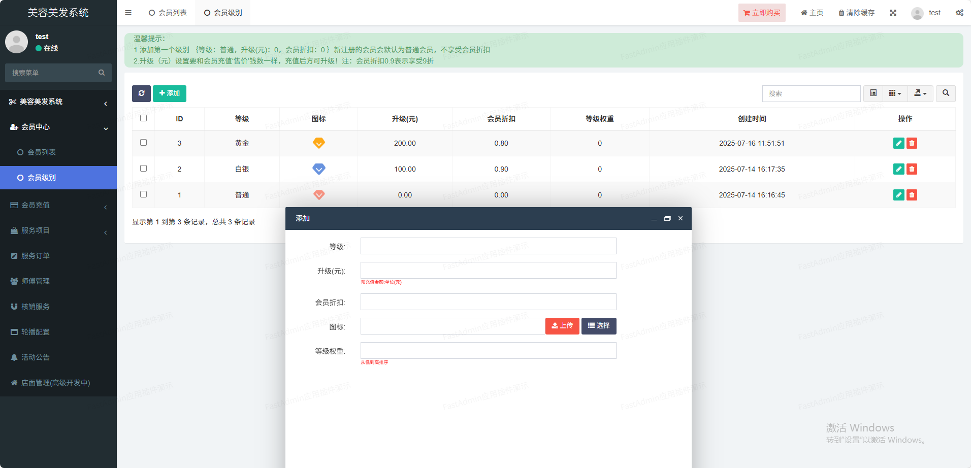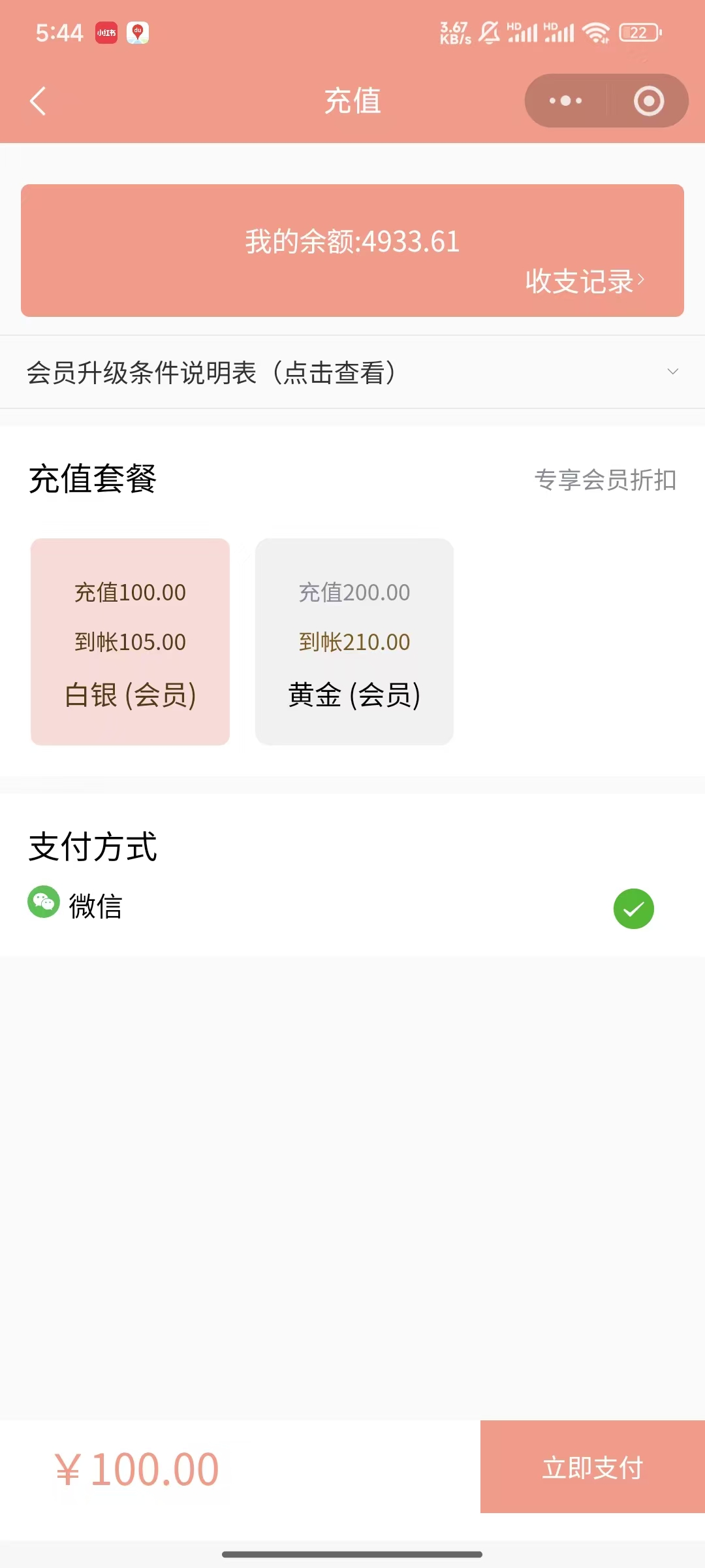 会员享受折扣,充值售价和会员级别升级条件设置同等价,充值后可升级对应会员级别。